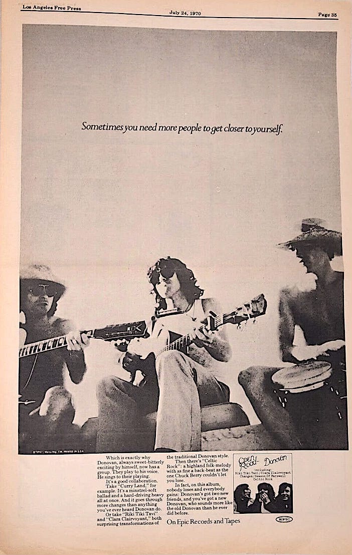 Donovan’s goal was to record songs that would be easy to replicate live, which meant avoiding lavish production. The resulting sound was dubbed “Celtic Rock” and out came the album OPEN ROAD (released July 1970).