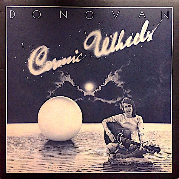 Donovan’s decision to walk away from superstardom was permanent, and he never regained his commercial status despite best efforts and a string of quality albums—including COSMIC WHEELS, his well-made 1973 reunion with Mickie Most, timed with the 70s glam rock cosmology of Marc Bolan and David Bowie.